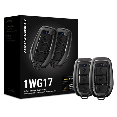 1500-ft max range, water-resistant remote kit. Includes two 1-way remotes. Works with all Compustar remote start and security systems (long hold on the unlock button is the trunk pop signal)